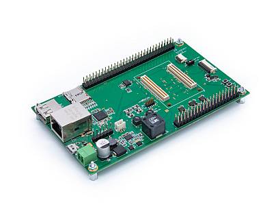>Extremely many possibilities. Base board: A wealth of interfaces for a variety of applications is included: 1x 1Gbit Ethernet RJ45, 1x microSD slot, 1x USB-Host TypeA, 1x USB OTG MicroUSB, 5 inch MIPI touchscreen display, 40 PIN: GPIO header RasperryPI compatible and 60 PIN: Extension header with GPIO, SPI, I2C, ANG, 3.3V, 5V.